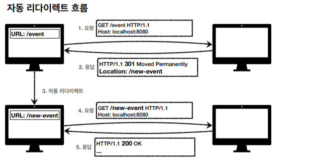 : 3xx 응답 결과에 Location 헤더가 있으면, 웹 브라우저에서 Location 위치로 자동으로 이동하는 것