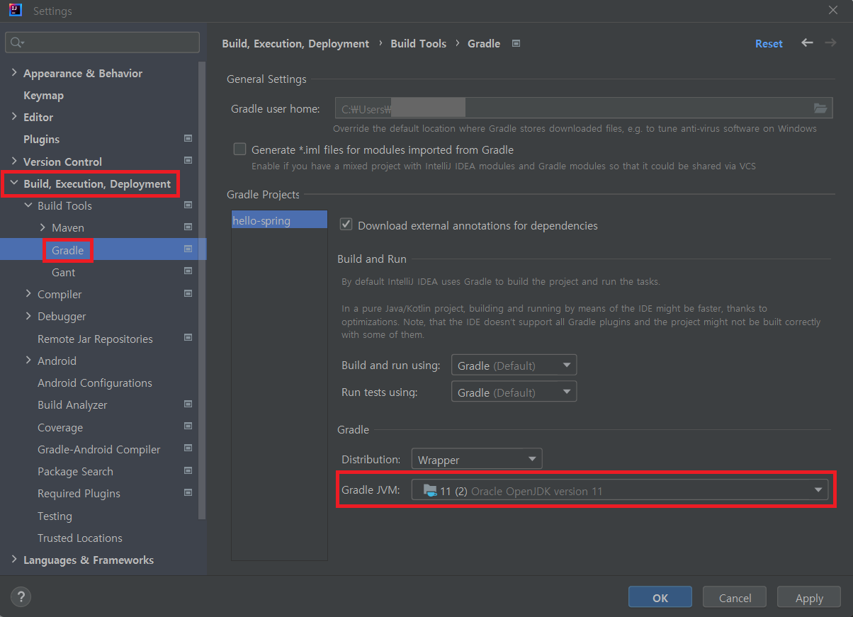 Gradle JVM이 21이 아닌 11로 선택되어 있었다.