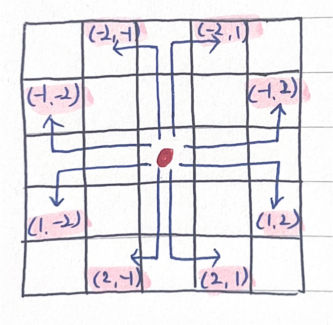 int[][] moves = {{-1, -2}, {1, -2}, {2, -1}, {2, 1},