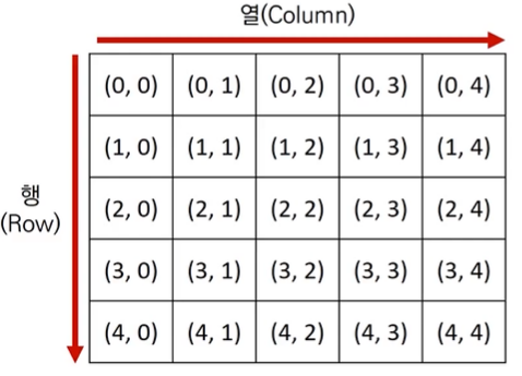 일반적으로 알고리즘 문제에서의 2차원 공간은 행렬(Matrix)의 의미로 사용된다.
