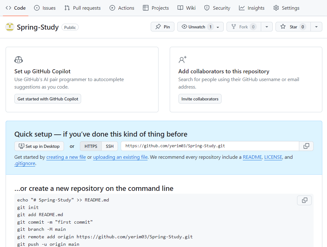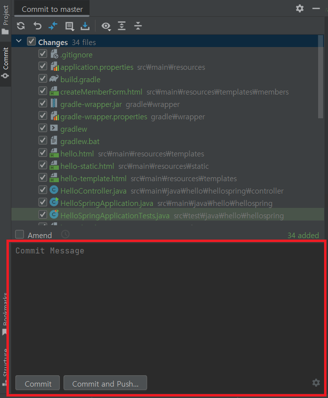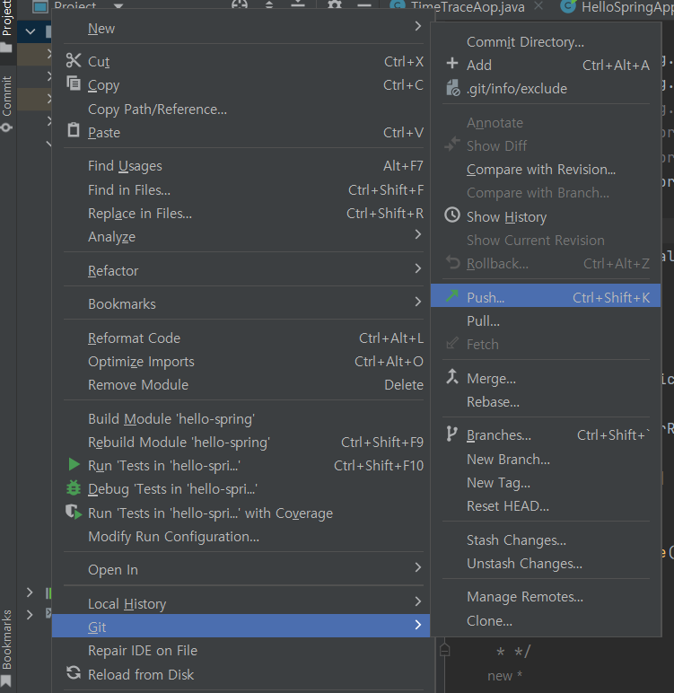 - VCS → Create Git Repository 클릭 → 원하는 프로젝트 선택