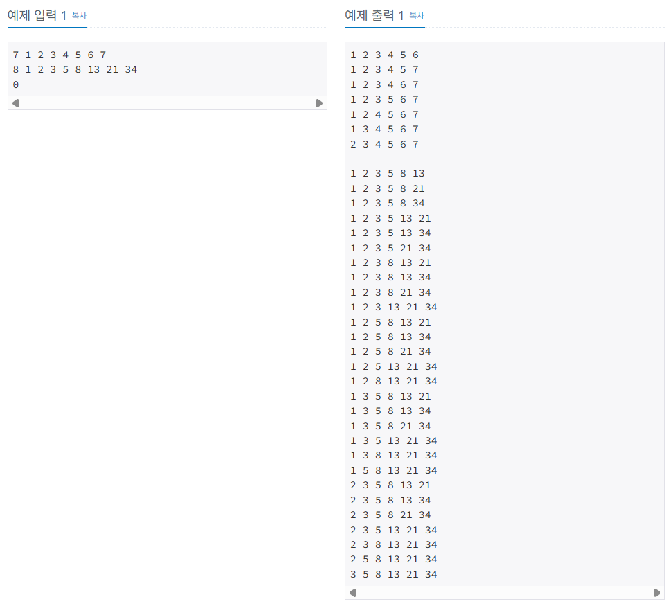 https://www.acmicpc.net/problem/6603