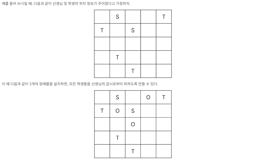 T-선생님, S-학생, O-장애물, X-아무것도 존재하지 않음