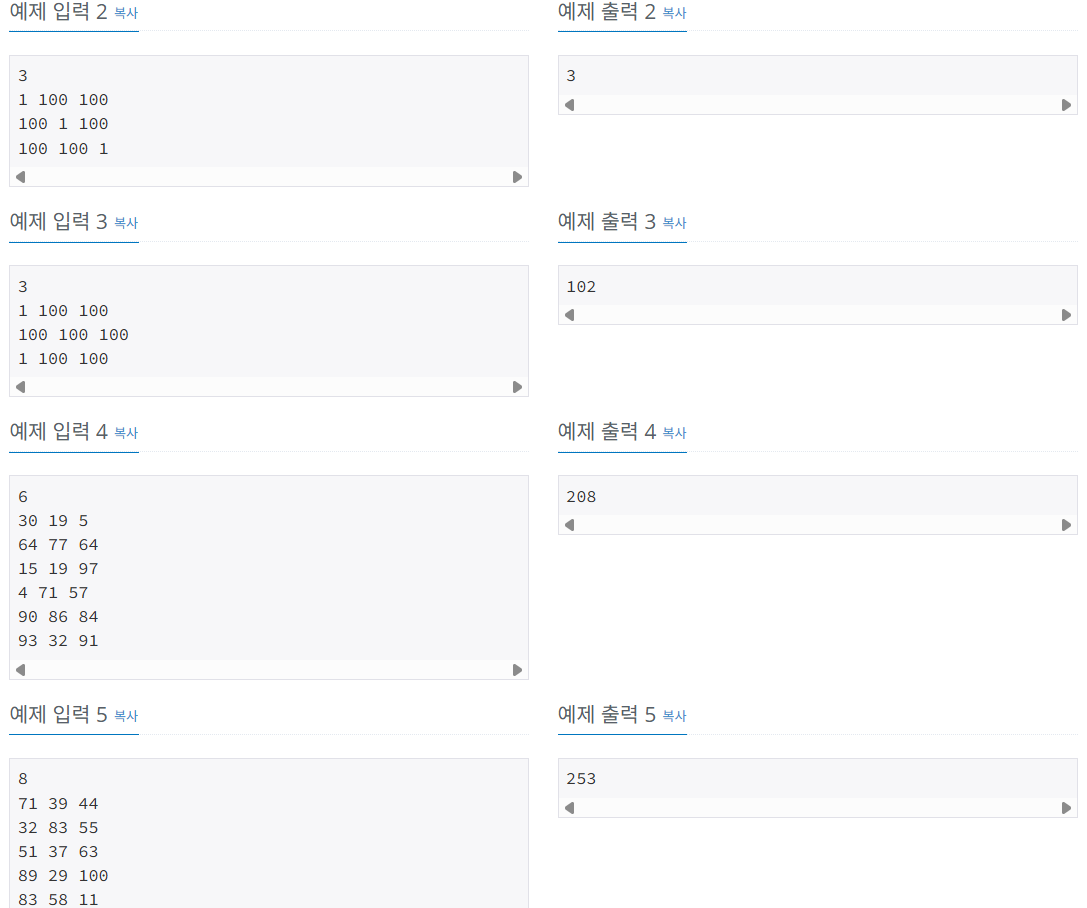1 ~ N 번의 집을 아래 규칙을 따라서 빨강, 초록, 파랑 중 하나를 골라 색을 칠하는 데 드는 비용의 최솟값을 구한다.